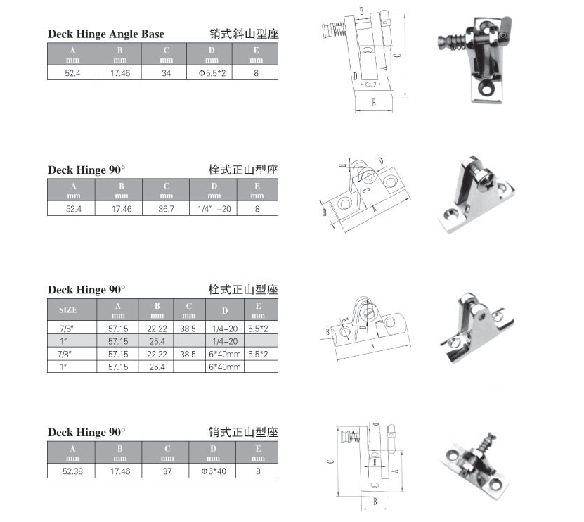 Product Description:Stainless steel deck hinge is bow bimini top hardware, high quality,big loading,Long service life.
